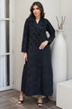 The December Abaya combines elegance and comfort with a flowing silhouette. Made from Striped silk fabric, it is lightweight and breathable. adding a modern touch to the traditional design. With its sleek and refined look, this abaya is ideal for casual occasions.