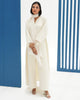 A modern abaya crafted from luxurious fancy fabric, featuring a flowy cut with wide sleeves and side openings for a chic touch. Designed with a vibrant multi-tone pattern, it perfectly combines elegance and comfort, making it ideal for both casual and special occasion