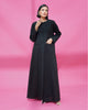 Embrace a unique look that blends tradition and beauty with this luxurious black abaya adorned with refined floral patterns along the edges and sleeves. The delicately embroidered trim adds a touch of sophisticated elegance.