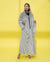 Add a touch of modern elegance to your look with this luxurious abaya, designed with Black polka dot patterns on a chic White background.