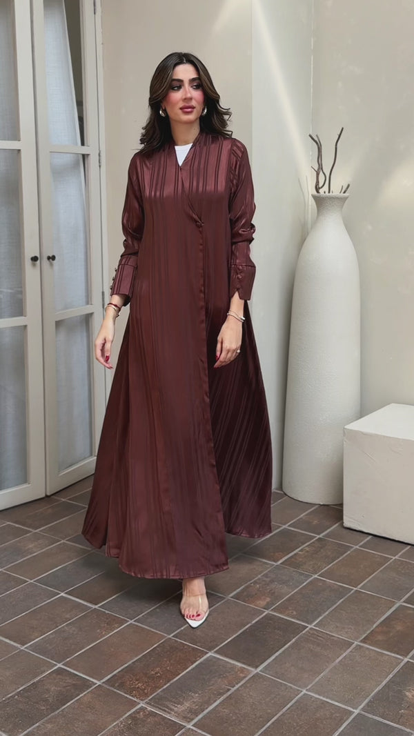 The December Abaya combines elegance and comfort with a flowing silhouette. Made from Striped silk fabric, it is lightweight and breathable. adding a modern touch to the traditional design. With its sleek and refined look, this abaya is ideal for casual occasions.