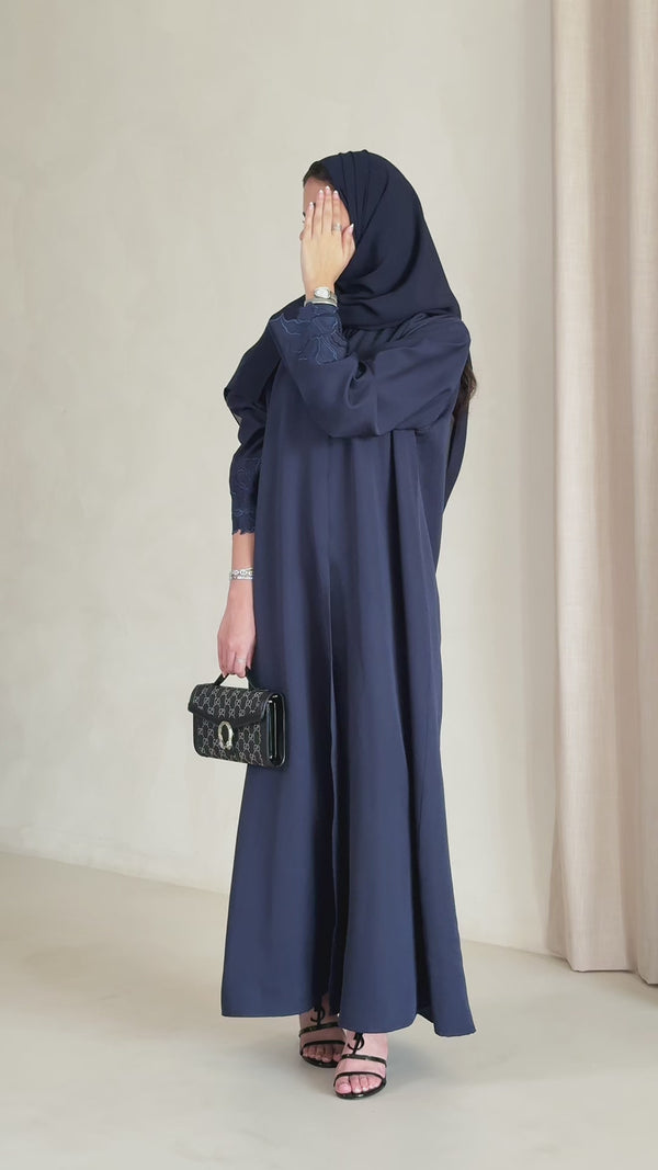 عباية أنيقة بلون الازرق بتصميم عصري وعملي.