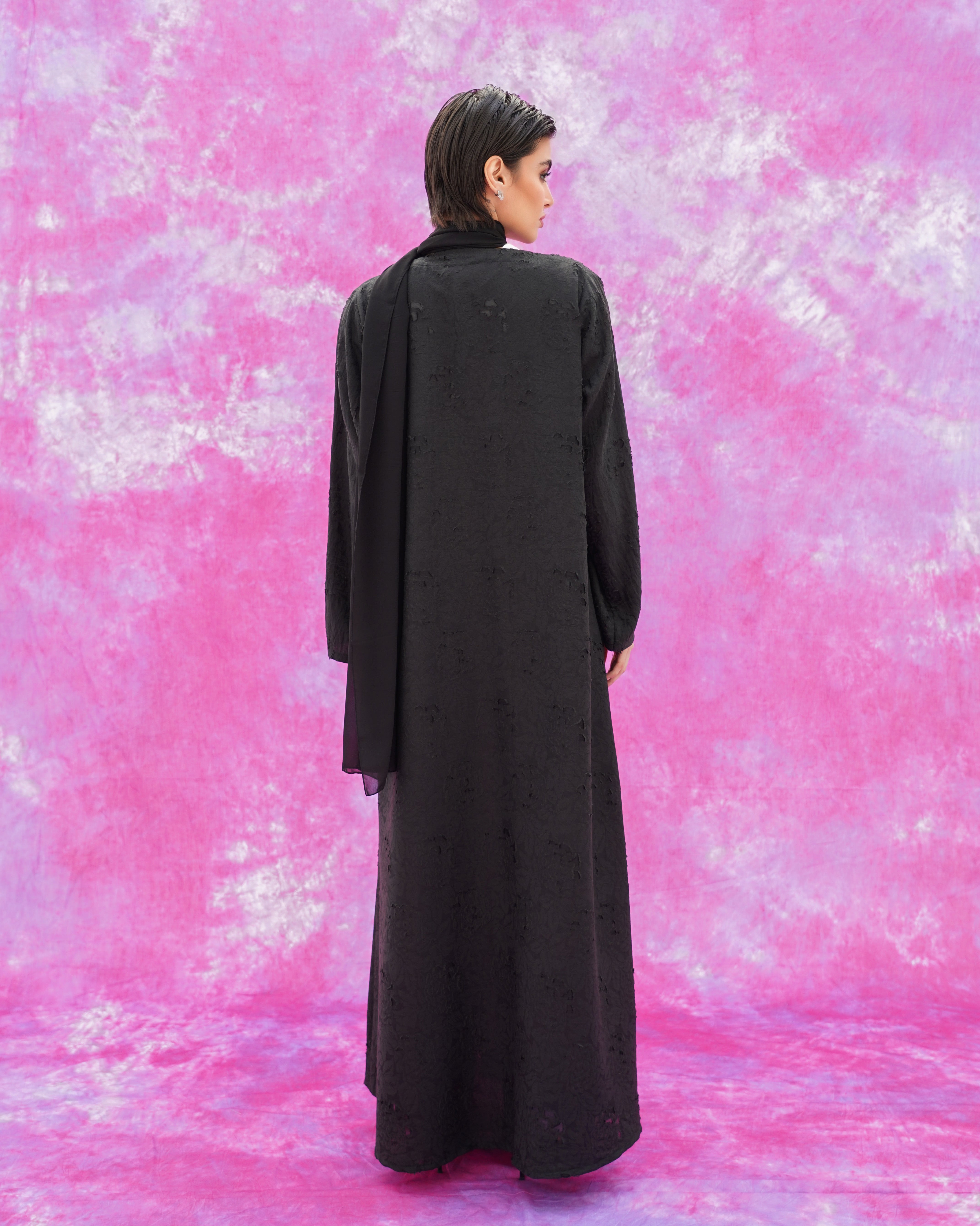بتصميم أنيق وناعم، مصنوعة من قماش فاخر بملمس غني وتفاصيل نسيجية دقيقة تضيف عمقًا وجاذبية دون مبالغة. قصتها الانسيابية تمنح راحة وأناقة في آن واحد، وتناسب الإطلالات اليومية الراقية وكذلك المناسبات الخاصة. اختيار مثالي للمرأة التي تفضل الجمال الهادئ والتفاصيل الراقي